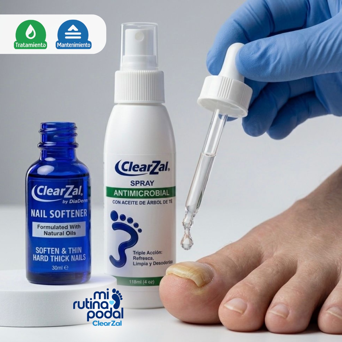 - Utiliza de forma constante como parte de tu Rutina Podal ClearZal.